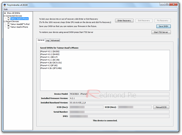 Once you’re done downloading TinyUmbrella, launch it, and then click on the “Exit Recovery” button. In a matter of seconds, your device will boot up normally.