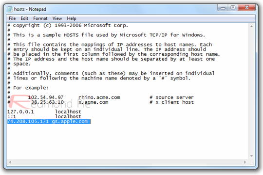 Once you’re done with this, the last thing you’re going to do is remove the line you added to the “host” file in step 3, which is 74.208.105.171 gs.apple.com in order to receive updates from Apple’s servers normally.